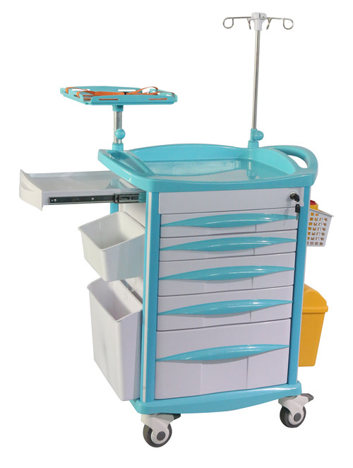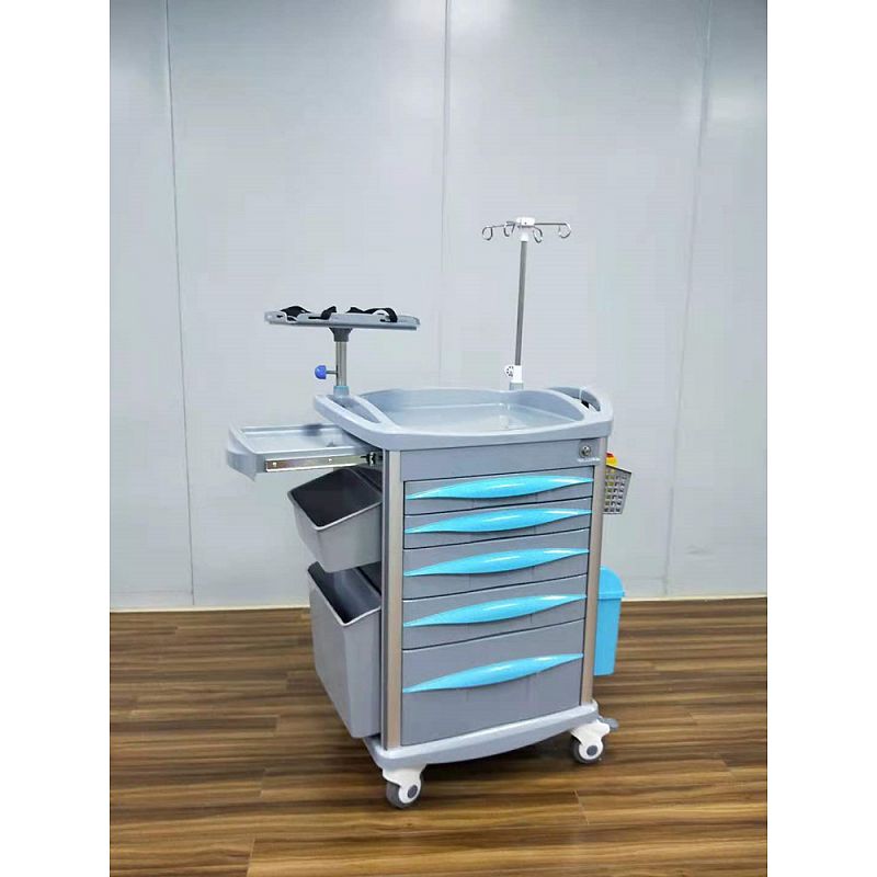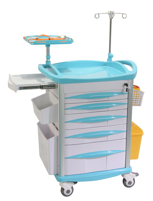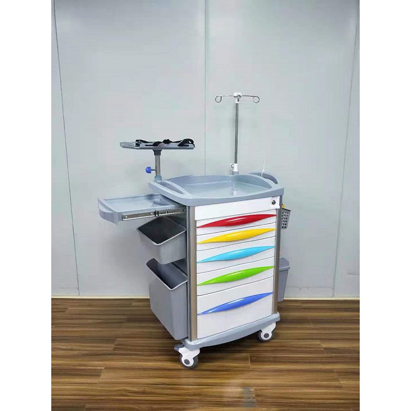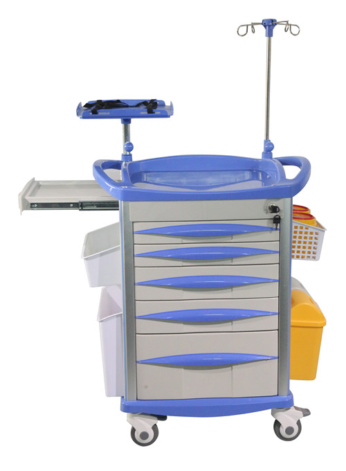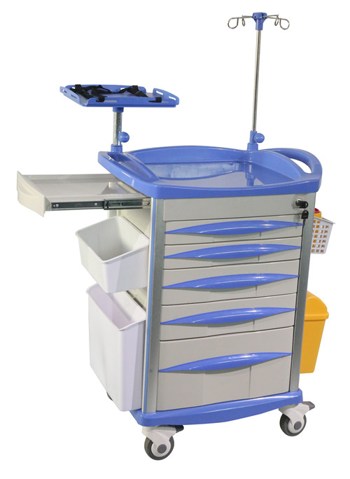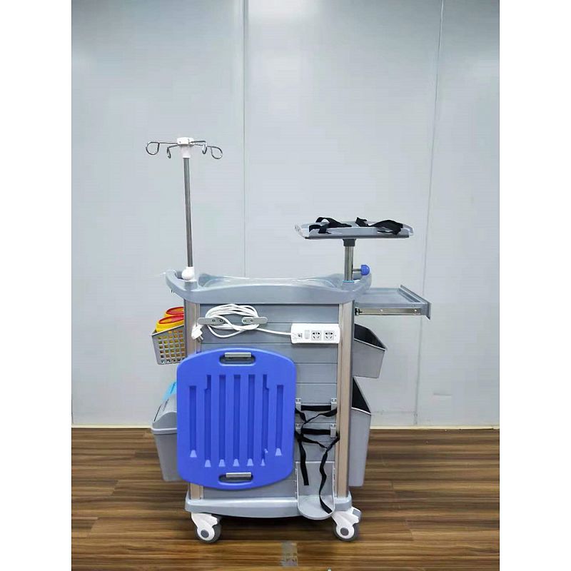 4.左:除颤器平台。隐藏式可调工作台。填料盒,文件盒。